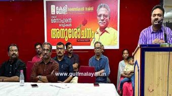 റിയാദ്: കേളി കലാസാംസ്കാരിക വേദിയുടെ സജീവ പ്രവർത്തകനും ന്യൂ സനയ്യ രക്ഷാധികാരി സെക്രട്ടറിയുമായിരുന്ന മനോഹരൻ നെല്ലിക്കലിന്റെ വിയോഗത്തിൽ കേളി അനുശോചന