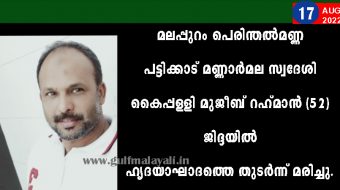 ജിദ്ദ: മലപ്പുറം പെരിന്തല്മണ്ണ പട്ടിക്കാട് മണ്ണാര്മല സ്വദേശി കൈപ്പള്ളി മുജീബ് റഹ്മാന് (52) ജിദ്ദയില് ഹൃദയാഘാദത്തെ തുടര്ന്ന് മരിച്ചു. ശറഫിയ്യയിലെ