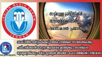 ജിദ്ദ: നാട്ടില് അവധിയിലുള്ള പതിനായിരക്കണക്കിനു പ്രവാസികള് സൗദിയിലേക്ക് മടങ്ങി വരാനാകാതെ പ്രയാസപ്പെടുന്ന സാഹചര്യത്തില് അവരുടെ മടങ്ങി വരവിന് ആവശ്യമായ ഇടപെടലുകള്