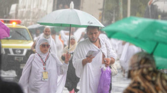 അറഫ: ഹജജ് വേളയില് അറഫാത്തില് ഹാജിമാര് അനുഷ്ഠാന കര്മ്മങ്ങള് നിര്വ്വഹിക്കുന്നതിനിടെ പെയ്ത മഴ ഹാജിമാര് ആസ്വദിച്ചു. സാമാനൃം ശക്തമായാണ് മഴപെയ്തതെങ്കിലും