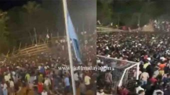 മലപ്പുറം: മലപ്പുറം പൂങ്ങോട്ടില് ഫുട്ബോള് ഗ്യാലറി തകര്ന്നുവീണു. അപകടത്തില് കളി കാണാനെത്തിയ നാല്പ്പതിലധികം പേര്ക്ക് പരിക്കേറ്റു. മൂന്നുപേരുടെ പരിക്ക് ഗുരുതരമാണ്.