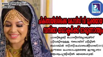 തലശ്ശേരി: ചികിത്സയിലിരിക്കെ കോവിഡ് വിമുക്തയായ വനിതാ ഡോക്ടർക്ക് ദാരുണാന്ത്യം. പാലിശ്ശേരി പോലീസ്ക്വാട്ടേഴ്സ് പിറകിലുള്ള നബാമ്സ് വീട്ടിൽ ഡോക്ടർ സി.സി.മഹാബഷീറാണ് (25)