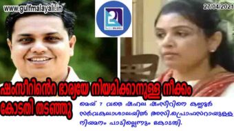 കൊച്ചി: മെയ് 7 വരെ എ എന് ഷംസീര് എംഎല്എയുടെ ഭാര്യ ഷഹല ഷംസീറിനെ കണ്ണൂര് സര്വകലാശാലയില് അസി.പ്രൊഫസറായുള്ള നിയമനം