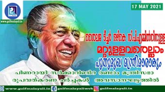 തിരുവനന്തപുരം: പിണറായി സര്ക്കാറിന്റെ രണ്ടാം മന്ത്രിസഭാ രൂപവത്കരണ ചര്ച്ചകള് അവസാനഘട്ടത്തില്. അവസാന ഘട്ട ചര്ച്ചകള് എ.കെ.ജി. സെന്ററില് നടക്കുകയാണ്. ഒന്നാം