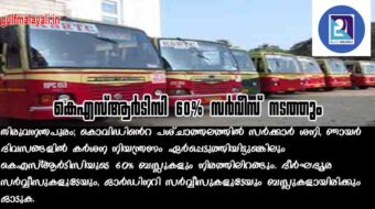 കെഎസ്ആര്ടിസി 60% സര്വീസ് നടത്തും