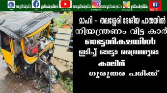 കാര് ഓട്ടോയുമായി കൂട്ടിയിടിച്ച് ഓട്ടോ ഡ്രൈവറുടെ കാലിന് ഗുരുതര പരിക്ക്