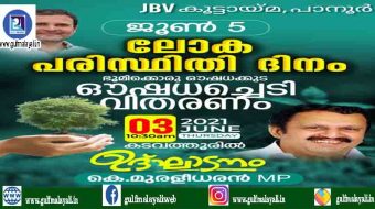 പാനൂർ: പാനൂർ ജെ.ബി.വി കൂട്ടായ്മയുടെ നേതൃത്വത്തിൽ ലോക പരിസ്ഥിതി ദിനത്തിൻ്റെ ഭാഗമായി ഔഷധച്ചെടി വിതരണം നടത്തി. കെ മുരളീധരൻ എം