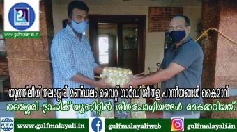 തലശ്ശേരി: യൂത്ത്ലീഗ് തലശ്ശേരി മണ്ഡലം വൈറ്റ് ഗാര്ഡിന്റെ നേതൃത്വത്തില് തലശ്ശേരി ട്രാഫിക് യൂണിറ്റില് ശീതളപാനിയങ്ങള് കൈമാറി. ട്രാഫിക് എ.എസ്.ഐ ഹരികൃഷ്ണന്