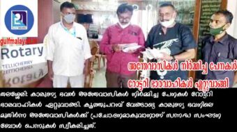 തലശ്ശേരി: കാരുണ്യ ഭവന് അന്തേവാസികള് നിര്മ്മിച്ച പേനകള് റോട്ടറി ഭാരവാഹികള് ഏറ്റുവാങ്ങി. കൂത്തുപറമ്പ് വേങ്ങാട്ടെ കാരുണ്യ ഭവനിലെ മുതിര്ന്ന അന്തേവാസികള്ക്ക്