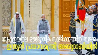 ദുബായ്: യുഎഇയിലെ ഔദ്യോഗിക സന്ദർശനത്തിന് തുടക്കം കുറിച്ച് ഇന്ത്യൻ പ്രധാനമന്ത്രി നരേന്ദ്ര മോദി ശനിയാഴ്ച അബുദാബിയിലെത്തി. അബുദാബി കിരീടാവകാശി ഷെയ്ഖ് ഖാലിദ്